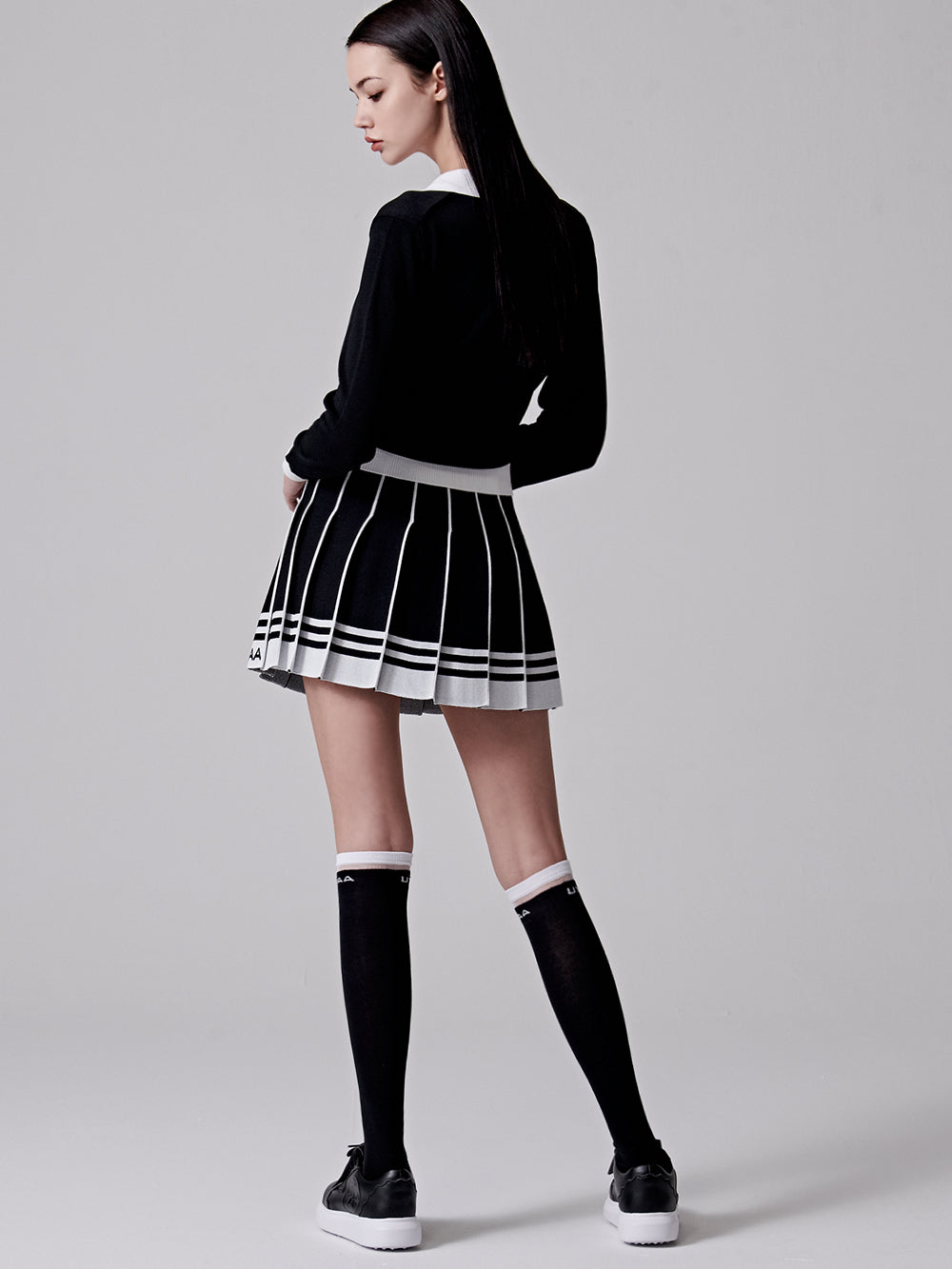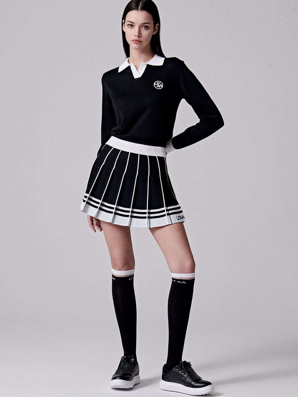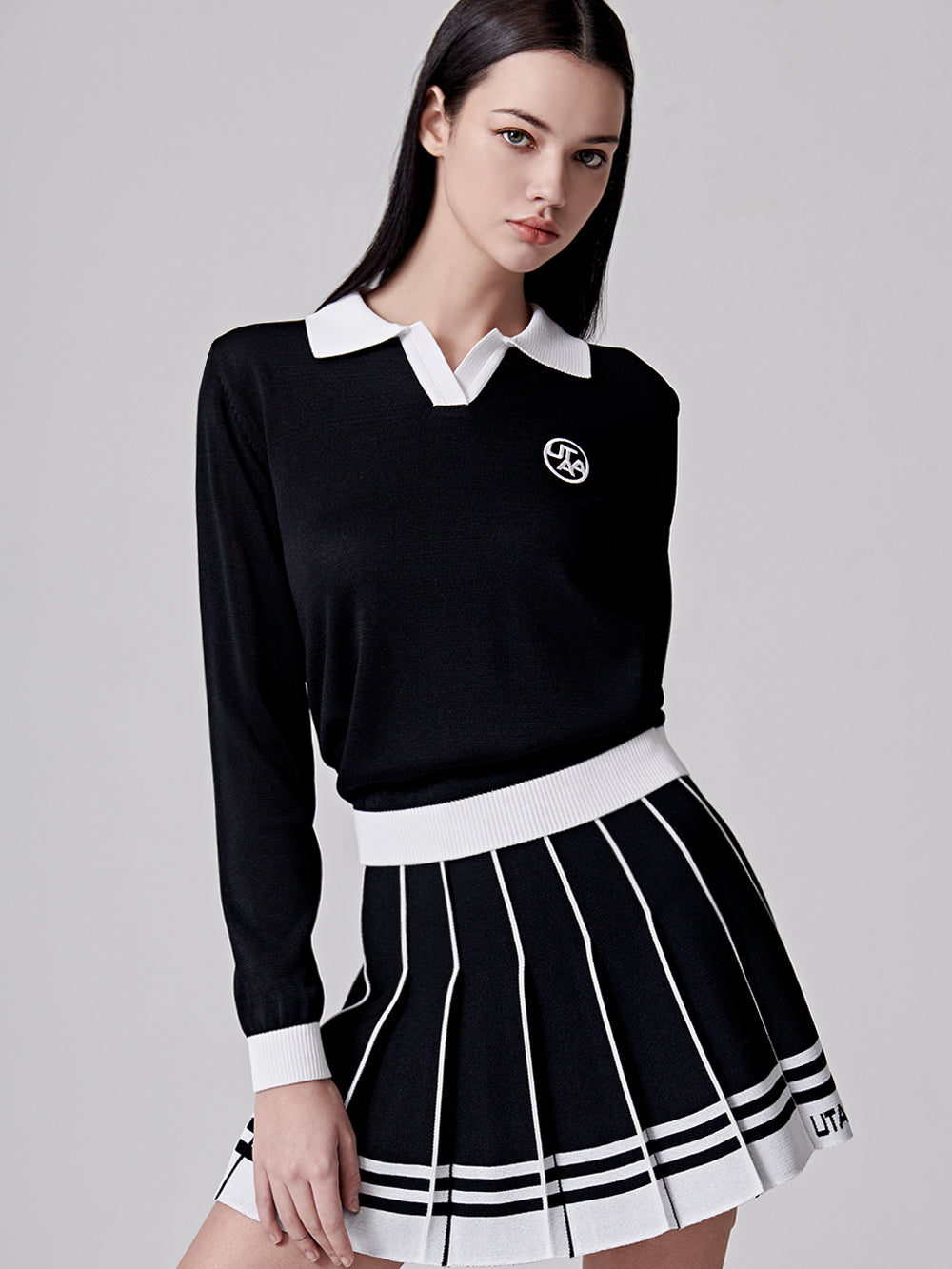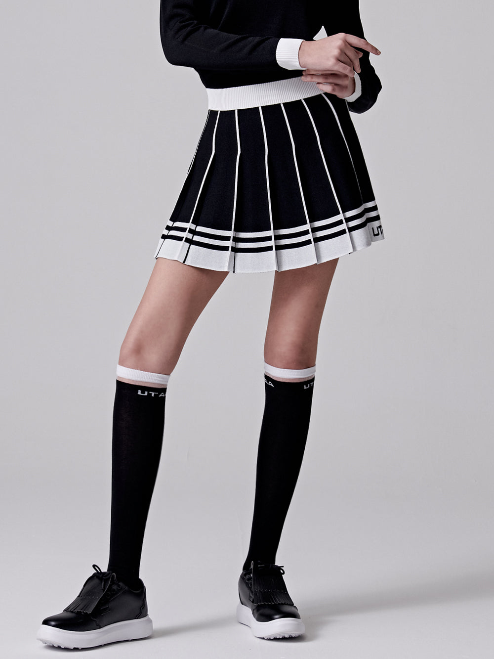 UTAA Fancy Stripe Knit Skirt : Women's Black (UC4SKF416BK)